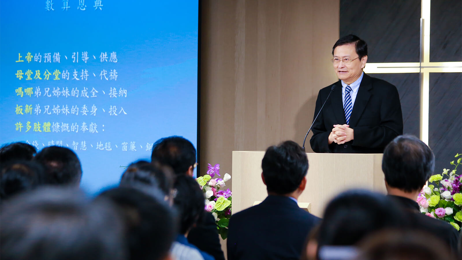 何長老於板新建堂感恩禮拜中數算上帝恩典